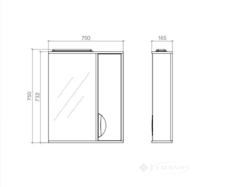 Шкафчик зеркальный Van Mebles Венге 70 см правая (000001409)