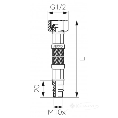 Гибкая подводка для смесителя Ferro L=100 M10x1/2" нержавеющая оплетка (WBS86)