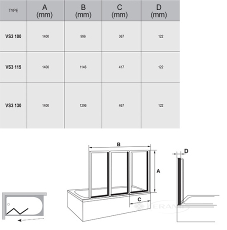 Перейти к подробному описаниюШтора состоит из трех подвижных частей, которые складываются вовнутрь ванны. Штора подходит для ванны BeHappy и других прямоугольных ванн с ровным передним бортом (Praktik Lux, Praktik N, Classic, Sonata, Campanula II, Vanda и Lilia) или какой-либо классической прямоугольной ванны с ровным передним бортом. Последняя часть шторы складывается вовнутрь, и тем самым частично образует закрытое душевое пространство. Стандартная высота шторы 1400 мм. Штора для ванны VS3 100 предназначена для ванн: BeHappy 150, VS3 115 - BeHappy 160, а штора VS3 130 для BeHappy 170. Поворотом шторы на 180° получите левый или правый варианты входа. Штора для ванны VS3 100 в сложенном виде 340 мм, VS3 115 — 392 мм, а VS3 130 - 444 мм.