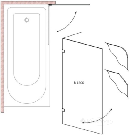 Штора д/ванны Liberta Parma 90x150 стекло прозрачное левая