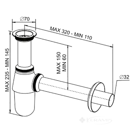 Перейти к подробному описаниюСифон для умывальника Prevex D32 с пробкой, хром (A122M32M-01)