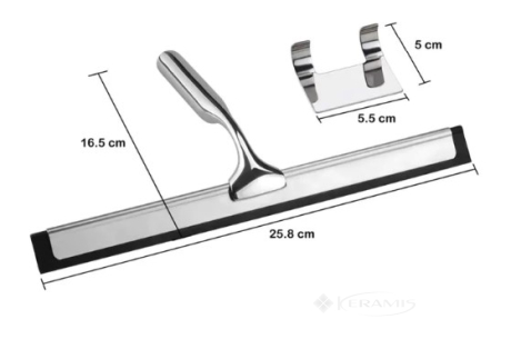 Ручка и резиновая застежка изготовлены из металла, устойчивого к царапинам и коррозии. Достаточно всего нескольких движений, чтобы плитка в ванной, кабина или зеркало оставались сухими и чистыми, без разводов и разводов.