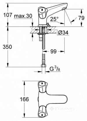 Германия, гарантия от произв. - 5 лет, цвет: хром, материал: латунь, двухвентильный, установка на умывальник