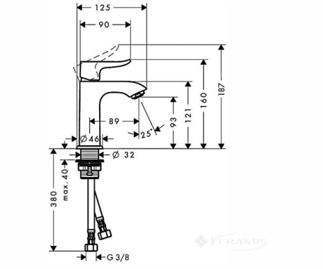 Германия, гарантия от произв. - 5 лет, цвет: хром, материал: латунь, однорычажный, установка на умывальник