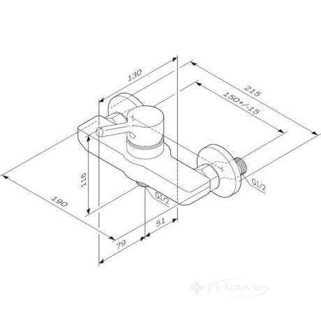 Германия, гарантия от произв. - 10 лет, цвет: хром, материал: латунь, однорычажный, установка на стену, механизм: керамический картридж