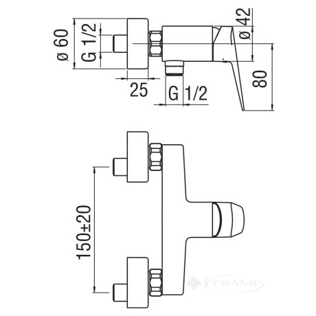 Италия, гарантия от произв. - 5 лет, цвет: хром, материал: латунь, однорычажный, установка на стену, механизм: керамический картридж