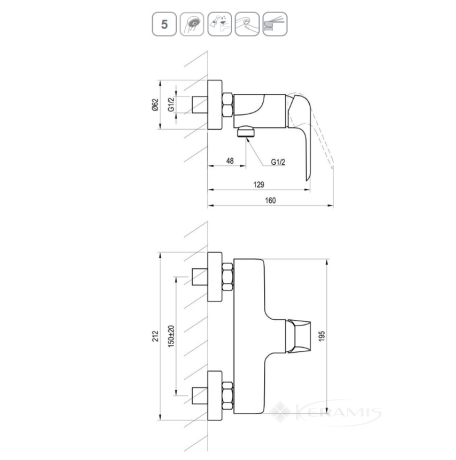 Чехия, гарантия от произв. - 5 лет, цвет: черный, материал: латунь, однорычажный, установка на стену, механизм: керамический картридж