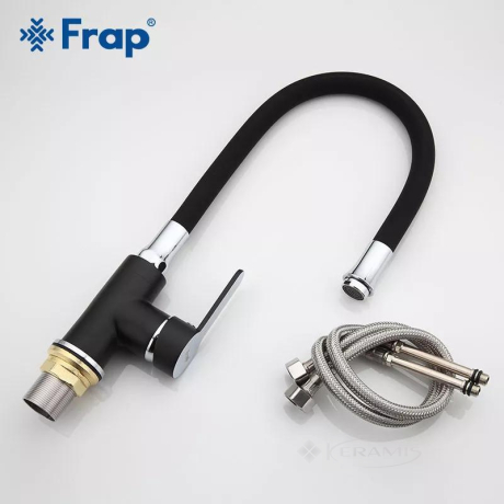 Перейти к подробному описаниюсмеситель для кухни Frap с гибким изливом, черный (F4042)