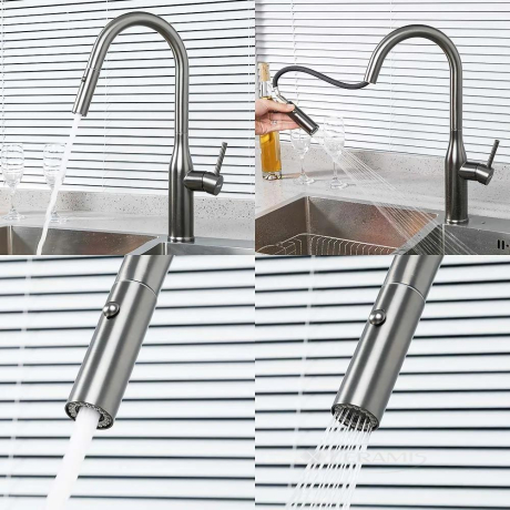 Отзывы о товаре Смеситель для кухни Gappo с выдвижным изливом, gungrey (G4398-41)1 отзыв
