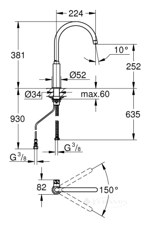 Германия, гарантия от произв. - 5 лет + 1 год, цвет: хром, материал: латунь, однорычажный, установка на мойку, механизм: керамический картридж