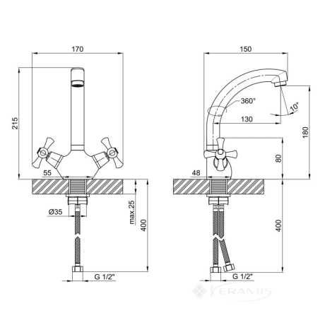 Польша, гарантия от произв. - 3 года, цвет: хром, материал: цинк, двухвентильный, установка на мойку, механизм: керамическая кран-букса
