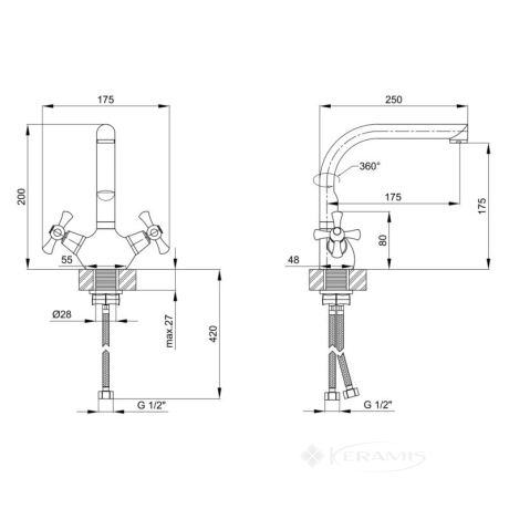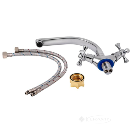 Польша, гарантия от произв. - 3 года, цвет: хром, материал: цинк, двухвентильный, установка на мойку, механизм: керамическая кран-букса
