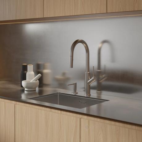Коллекция BEND отличается элегантным минималистичным дизайном, вдохновлённым гармоничным сочетанием окружностей и изгибов. Кухонные смесители оснащены поворотным выдвижным изливом с двухфункциональным душем, что обеспечивает увеличенную дальность струи и повышает комфорт использования. Смеситель оснащён высококачественным керамическим картриджем, а используемые инновационные технологии позволяют сократить расход воды до 50%, сохраняя при этом максимальный уровень комфорта.