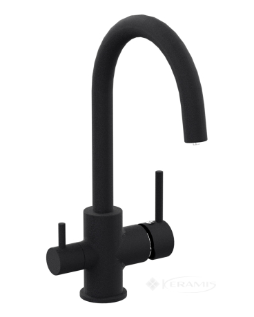 Чехия, гарантия от произв. - 5 лет, цвет: черный, материал: латунь, двухрычажный, установка на мойку, механизм: керамический