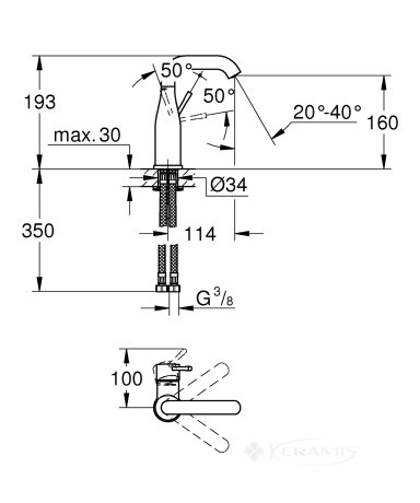 Германия, гарантия от произв. - 5 лет, цвет: хром, материал: латунь, однорычажный, установка на умывальник, механизм: керамический картридж