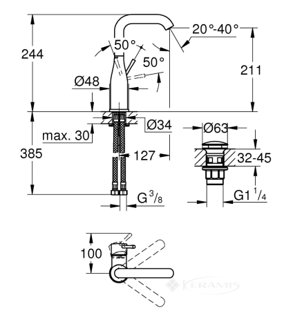 Смеситель для раковины Grohe Essence New L-size с донным клапаном, хром (23799001)