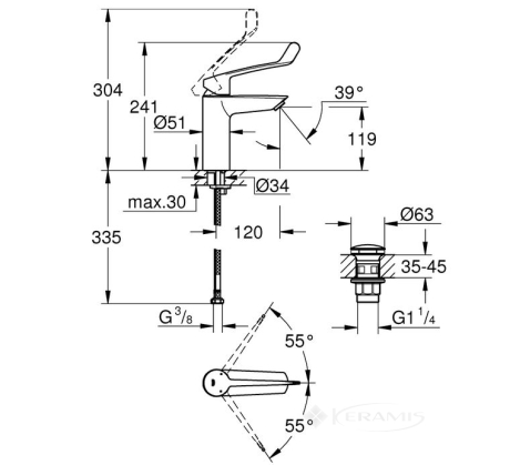 Германия, гарантия от произв. - 5 лет, цвет: хром, материал: латунь, однорычажный, установка на умывальник, механизм: керамический картридж