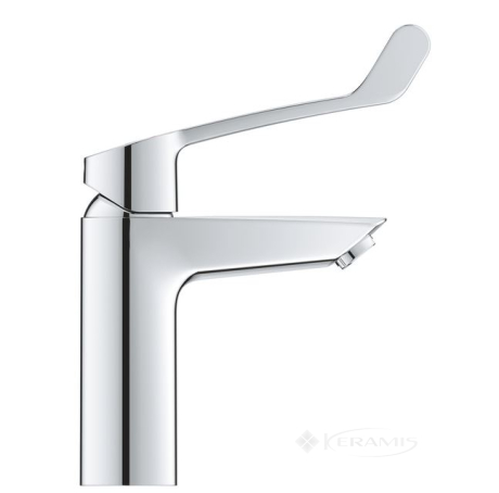 Однорычажный смеситель для раковины GROHE Eurosmart New — это специально разработанная модель с увеличенным рычагом управления, предназначенная для установки в медицинских учреждениях с целью обеспечения максимального удобства и комфорта пользования для медперсонала, посетителей, больных и людей с инвалидностью конечностей во время проведения ими водно-гигиенических процедур.