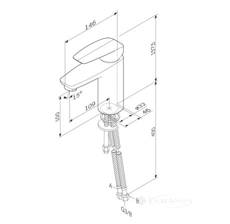 Германия, гарантия от произв. - 10 лет, цвет: хром, материал: латунь, однорычажный, установка на умывальник, механизм: керамический картридж