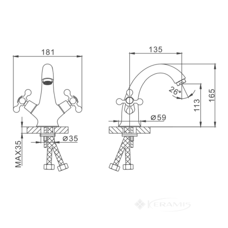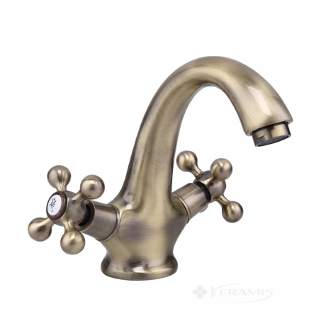 Китай, гарантия от произв. - 3 года, цвет: бронза, материал: латунь, двухвентильный, установка на умывальник, механизм: керамическая кран-букса
