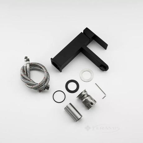 Китай, гарантия от произв. - 3 года, цвет: черный, материал: нержавеющая сталь, однорычажный, установка на умывальник, механизм: керамический картридж