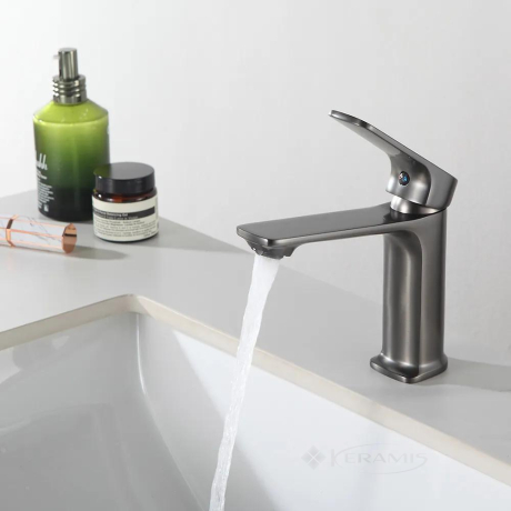 Китай, гарантия от произв. - 1 год, цвет: gungrey, материал: латунь, однорычажный, установка на умывальник, механизм: керамический картридж