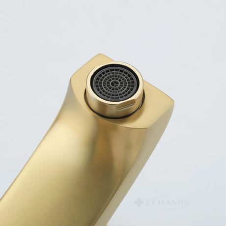 Китай, гарантия от произв. - 1 год, цвет: сатин золотий, материал: латунь, однорычажный, установка на умывальник, механизм: керамический картридж