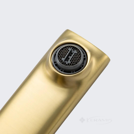 Китай, гарантия от произв. - 1 год, цвет: сатин золотий, материал: латунь, однорычажный, установка на умывальник, механизм: керамический картридж