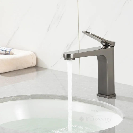 Китай, гарантия от произв. - 1 год, цвет: gungrey, материал: латунь, однорычажный, установка на умывальник, механизм: керамический картридж