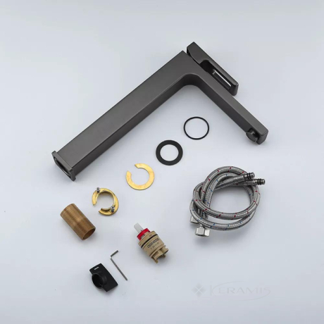 Китай, гарантия от произв. - 5 лет, цвет: gungrey, материал: латунь, однорычажный, установка на столешницу, механизм: керамический картридж