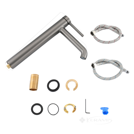 - Современный дизайн. Цвет "оружейной стали" и стильный дизайн смесителя создают современный и привлекательный вид, который дополнит любой интерьер ванной комнаты.