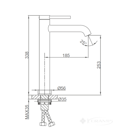 - Высота излива, мм253
