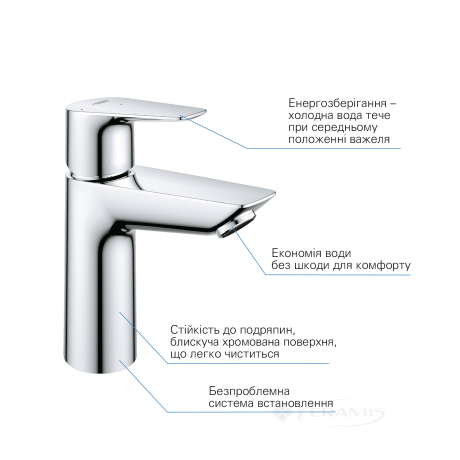 Германия, гарантия от произв. - 5 лет, цвет: хром, материал: латунь, однорычажный, установка на умывальник, механизм: керамический картридж