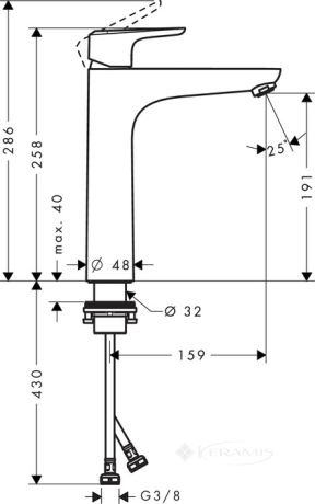 Германия, гарантия от произв. - 5 лет, цвет: хром, материал: латунь, однорычажный, установка на умывальник, тип: на одно отверстие