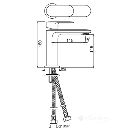Индия, гарантия от произв. - 5 лет, цвет: хром, материал: латунь, однорычажный, установка на умывальник, механизм: керамический картридж
