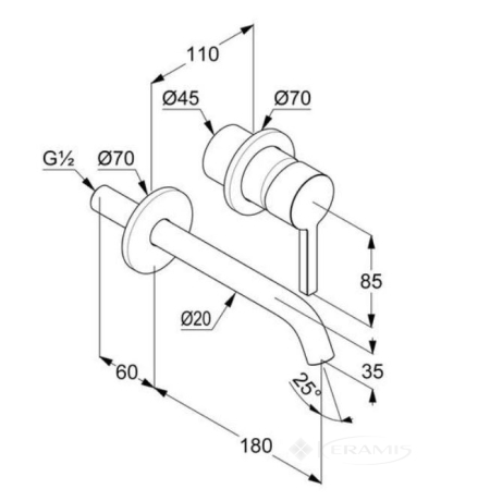 Германия, гарантия от произв. - 5 лет, цвет: brush nickel, материал: латунь, однорычажный, установка на стену, механизм: керамический картридж