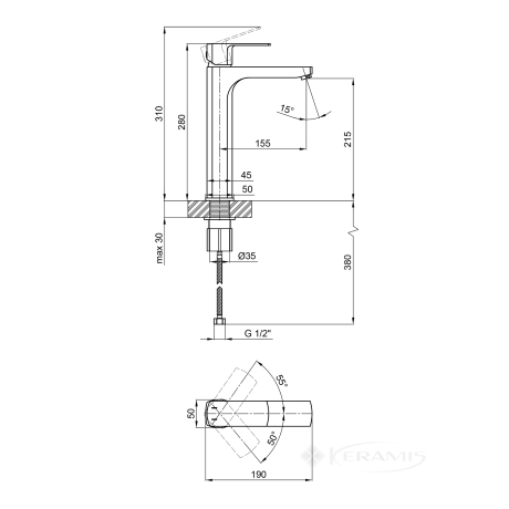 Чехия, гарантия от произв. - 10 лет, цвет: графит, материал: латунь, однорычажный, установка на умывальник, механизм: керамический