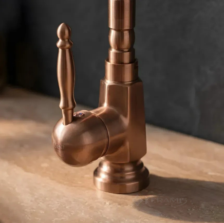 Польша, гарантия от произв. - 2 года, цвет: brushed copper, материал: латунь, однорычажный, установка на столешницу, механизм: керамический картридж