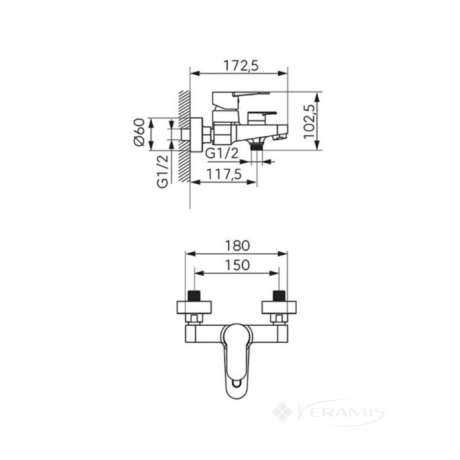 Польша, гарантия от произв. - 5 лет, цвет: хром, материал: латунь, однорычажный, установка на стену, механизм: керамический картридж