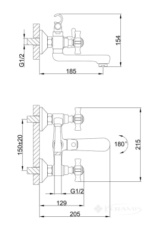 Китай, гарантия от произв. - 3 года, цвет: хром, материал: латунь, двухвентильный, установка на стену, механизм: керамическая кран-букса