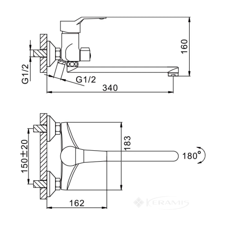 - Тип установки смесителяна стену
