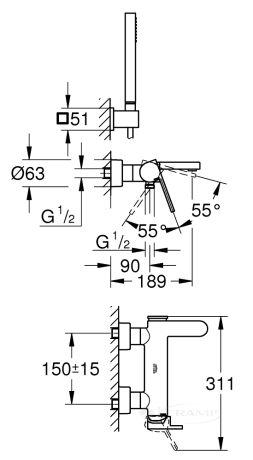 Смеситель для ванны и душа Grohe Plus с ручным душем, хром (33547003)