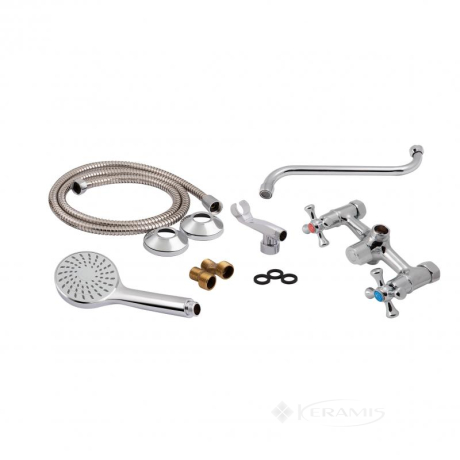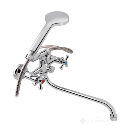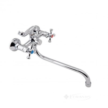 Польша, гарантия от произв. - 3 года, цвет: хром, материал: цинк, двухвентильный, установка на стену, механизм: керамическая кран-букса