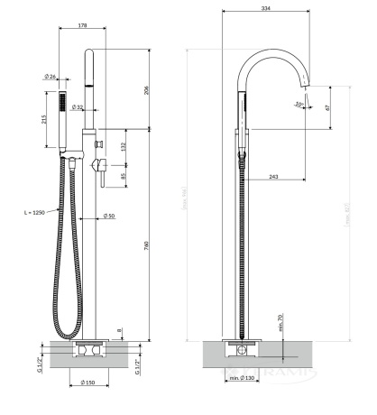смеситель для ванны Omnires Y отдельностоящий, polished gold (Y1233-SGL)