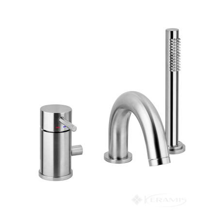 Италия, гарантия от произв. - 5 лет, цвет: сталь, материал: латунь, однорычажный, установка на борт ванны, механизм: керамический картридж