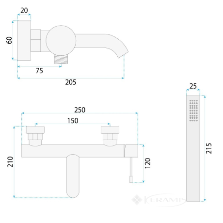 Полный комплект – в наборе смеситель, душевой шланг, ручной душ и настенный крепеж.