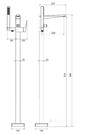 - подходит: к отдельно стоящим ваннам.