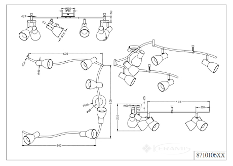 Спот Trio Levisto, никель матовый, алебастровый, 6 ламп, LED (871010607)