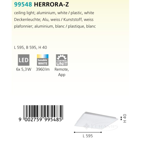 Светильник потолочный Eglo Herrora-Z (99548) — это красивый, универсальный источник света, который подойдет для жилых и коммерческих помещений. Благодаря хорошему качеству материалов, из которых изготовлено изделие. Потолочный светильник Eglo из категории «Освещение» отлично смотрится в единственном экземпляре, а также в комплекте с другими осветительными приборами.
