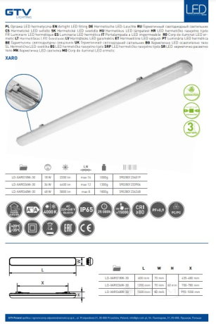В серию XARO LED входят светодиодные светильники от польского производителя GTV Poland . Накладной светодиодный светильник LED, GTV Poland , 18W, 4000K, IP65, 600мм, линейный, белого цвета, идеально впишется в любой экстерьер или промышленный интерьер. GTV Poland основана в 1997 году и является производителем светодиодной продукции и мебельной фурнитуры.